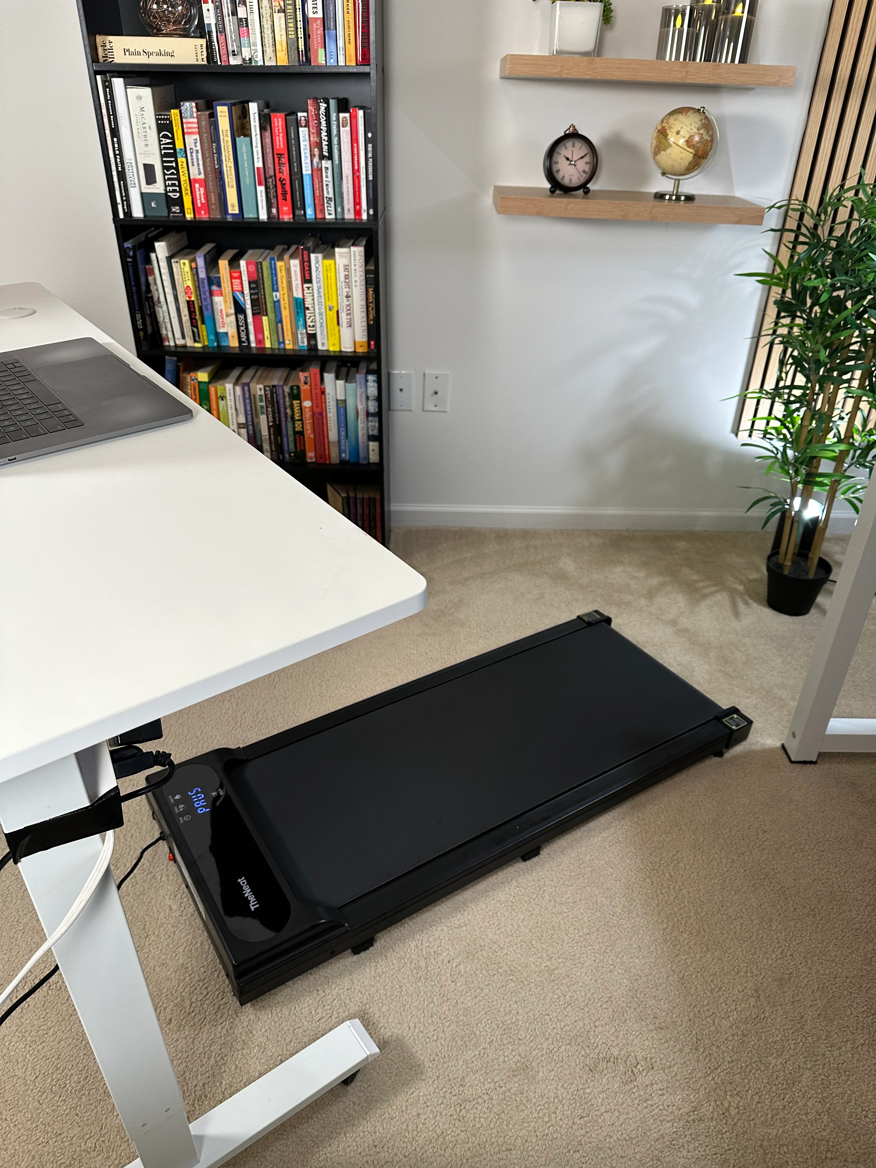 NeatWalk combines a powerful, ultra-quiet motor, making it perfect for both home and office use. Weighing just 36.5 lbs and measuring only 45.67 x 19 x 4.17 inches, it fits effortlessly under desks or beds and moves easily with built-in wheels. Track your progress in real-time with the LED display, and adjust settings using the included remote control. Enjoy smooth, silent, and convenient workouts with NeatWalk’s space-saving design and advanced features.